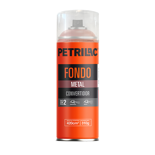 FONDO CONVERTIDOR es un fondo Rojo que se utiliza como mano previa en metales muy exigidos. Sirve de refuerzo del poder anticorrosivo de los esmaltes. Posee excelente nivelación, cubritivo, resistencia, adherencia, dureza. No chorrea ni gotea. Apto para metales y otros materiales donde recomendamos realizar una prueba de adherencia antes de pintar la totalidad. De uso Exterior o Interior. Los Aerosoles Petrilac tienen dos actuadores (picos) que presentan patrones de aplicación diferentes: uno permite aplicar la pintura más concentrada para superficies chicas o finas/angostas con un patrón circular; y el otro aplica la pintura más abierta con un patrón de dibujo más lineal ideal para superficies grandes (inserto rojo). Utilice el que más se adecue a su proyecto; pruebe cada actuador antes de iniciar el pintado de la pieza para ver cúal es el más adecuado.