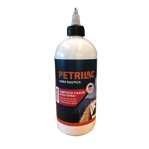 COMPUESTO PULIDOR ULTRA RAPIDO es un producto pulidor y abrillantador. Es muy fácil de aplicar. Está formulado con cera de carnauba y oxido de aluminio. Su aplicación con lija 1200 permite una efectiva eliminación de rayas. No deja residuo blanco, ni afecta plásticos ni gomas. Posee un muy bajo nivel de polvo. No contiene cargas minerales ni siliconas. Se recomienda para máquinas de pulir orbitales entre 1500-2000 rpm, tiene muy bajo salpicado. Puede ser usado sobre pintura, fibra de vidrio y Gel-Coat.