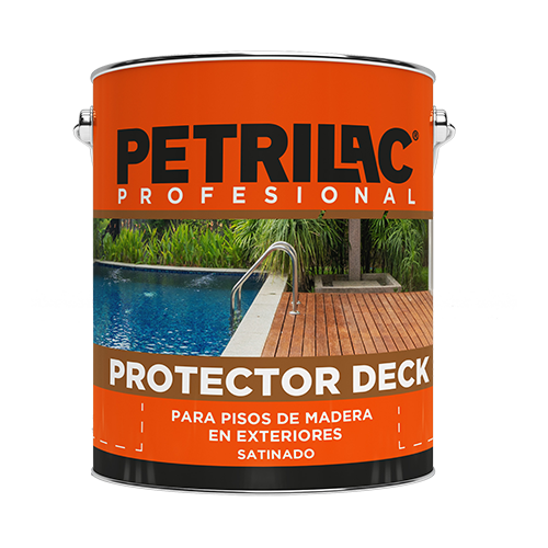 Deck Protector PETRILAC® para pisos de madera protege y decora las superficies horizontales ubicadas al exterior con una micropelícula satinada de alta penetración, ideal para cubiertas (decks), escaleras, senderos, etc.